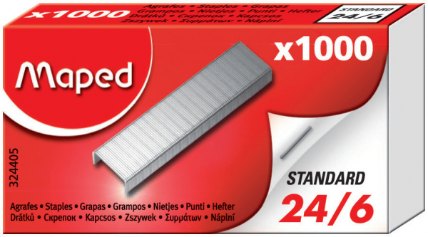 Cutie cu 1000 de capse din oțel inoxidabil de calitate superioară. Recomandat pentru o performanță optimizată. Capsele 24/6 sunt compatibile cu toate capsatoarele și capsatoarele 24/6.